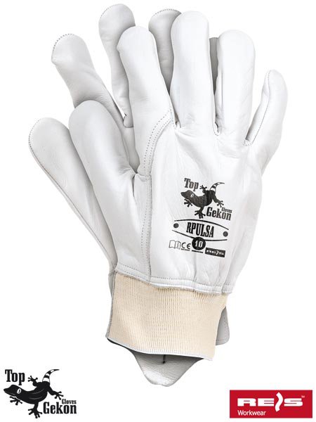 Rękawice ochronne wykonane z wysokiej jakości skóry bydlęcej.